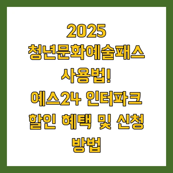 문화생활을 즐기고 싶지만 비용이 부담되시나요? 특히 젊은 세대에게 문화 향유의 기회를 확대하기 위해 청년문화예술패스 가 도입되었습니다. 이 패스는 예술의 문턱을 낮추고 청년들의 문화적 감수성을 풍요롭게 만들어 줄 것입니다. 본 포스팅에서는 2025년 청년문화예술패스 의 다양한 혜택과 예스24 , 인터파크 티켓 할인 팁을 자세하게 안내해 드리겠습니다. 패스 신청 방법 및 절차, 사용 시 주의사항 까지 꼼꼼하게 알려드리니, 이 기회를 놓치지 말고 풍성한 문화생활을 누려보세요!