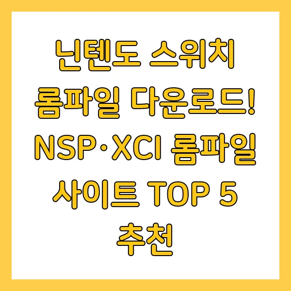닌텐도 스위치 게임을 즐기고 싶지만, 가격이 부담되시나요? 혹은 이미 가지고 있는 게임을 다른 기기에서도 플레이하고 싶으신가요? 그렇다면, 닌텐도 스위치 롬파일 에 대해 알아볼 필요가 있습니다. NSP와 XCI 등 다양한 종류의 롬파일 을 다운로드할 수 있는 곳들이 있지만, 안전하고 신뢰할 수 있는 사이트를 찾는 것 은 매우 중요합니다. 이 블로그에서는 닌텐도 스위치 롬파일 의 종류와 차이점을 설명하고, 안전하게 다운로드하는 방법 을 자세히 알려드리겠습니다. 또한, 엄선된 TOP 5 롬파일 사이트 를 추천하고, 각 사이트의 특징과 장단점을 비교 분석하여 여러분에게 최적의 선택지 를 제공할 것입니다. 자, 그럼 지금부터 닌텐도 스위치 의 세계를 더욱 넓고 깊이 있게 경험할 수 있는 방법을 함께 알아볼까요?