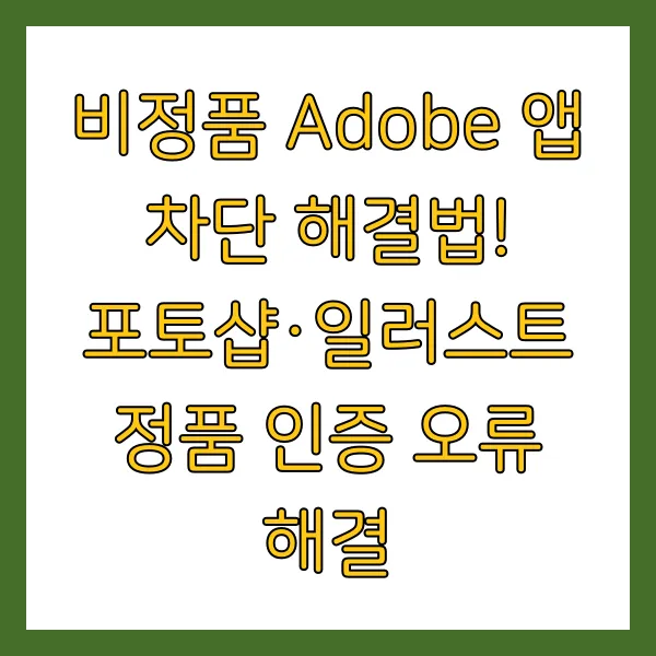 갑자기 포토샵이나 일러스트가 실행되지 않아 당황스러우셨던 경험, 있으신가요? " 비정품 Adobe 앱 차단 "이라는 메시지를 마주하며 작업의 흐름이 끊겨 곤란했던 적도 있으실 겁니다. Adobe 앱 정품 인증 오류 는 크리에이티브 작업에 필수적인 프로그램들을 사용할 수 없게 만들어 큰 불편을 초래합니다. 이러한 오류는 다양한 원인으로 발생할 수 있으며, 해결 방법 또한 여러 가지입니다. 본 포스팅에서는 비정품 Adobe 앱 차단 문제를 해결하는 방법 과 포토샵, 일러스트 등의 정품 인증 문제를 해결하는 실질적인 팁 들을 자세히 알려드리겠습니다. 정품 Adobe 앱 사용의 중요성 을 이해하고, 안정적인 작업 환경을 구축하는 데 도움 이 되기를 바랍니다.