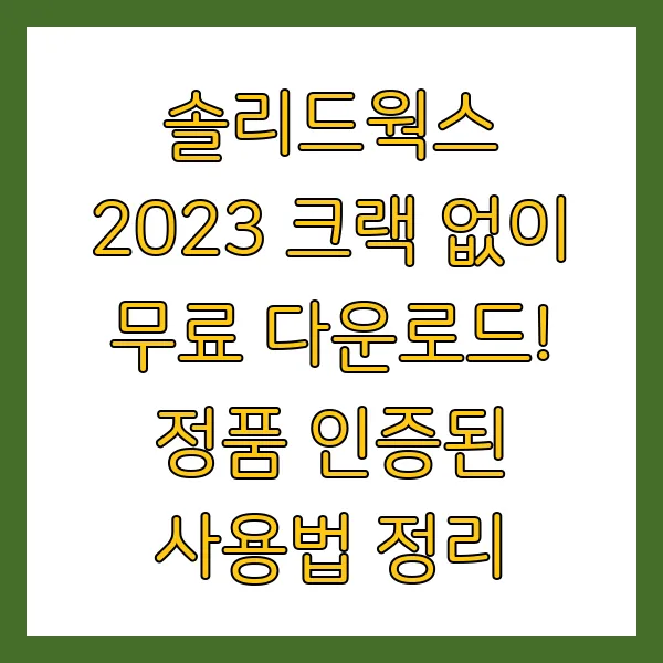 3D 모델링의 세계에 발을 들여놓고 싶으신가요? 강력한 설계 도구인 솔리드웍스 2023 을 통해 여러분의 아이디어를 현실로 만들어보세요. 많은 분들이 솔리드웍스 2023 크랙 버전을 찾지만, 저희는 정품 소프트웨어 사용의 중요성 을 강조하고자 합니다. 이 글에서는 크랙 없이 솔리드웍스 2023을 무료로 다운로드하고 정품 인증을 받는 방법 을 자세히 안내해 드립니다. 합법적인 방법으로 솔리드웍스를 사용하면 안전하게 최신 기능과 업데이트를 누릴 수 있습니다. 또한, 크랙 버전 사용의 위험성 을 알려드리고, 안전한 대안을 제시하여 여러분의 소중한 데이터와 시스템을 보호 하는 데 도움을 드리고자 합니다. 솔리드웍스 2023 설치 및 인증 가이드 를 통해 전문가 수준의 3D 모델링 경험을 시작해보세요!