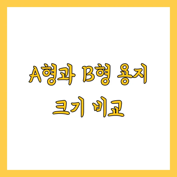 자, 이제 드디어!! A형 용지와 B형 용지의 크기를 비교하는 시간입니다~? 지금까지 각각의 규격에 대해 자세히 알아봤으니, 이 둘을 비교해보면 더욱 흥미로운 사실들을 발견할 수 있을 거예요! 두근두근?! ^^