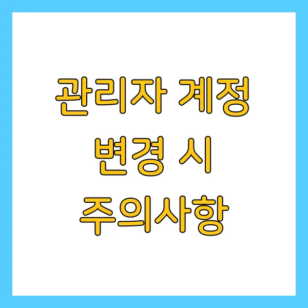 기존 관리자 계정 정보 숙지! 변경 과정에서 기존 관리자 계정 정보를 요구하는 경우가 종종 있어요. 계정 이름, 비밀번호 등 중요 정보는 미리 메모해 두는 꼼꼼함을 발휘해 주세요!