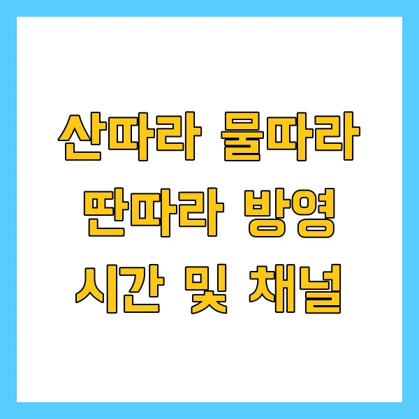 자, 여러분! 드디어 베일을 벗는 순간입니다! 두근거리는 마음으로 기다리고 계셨을 '산따라 물따라 딴따라'의 방영 시간과 채널 정보, 지금 바로 공개합니다! 놓치면 후회할지도 몰라요~?