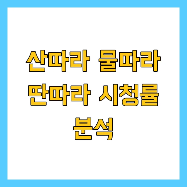 자, 이제 모두 궁금해하시던 "산따라 물따라 딴따라"의 시청률 심층 분석 시간입니다! 두근두근! 과연 어떤 놀라운 결과가 우리를 기다리고 있을까요? 😊