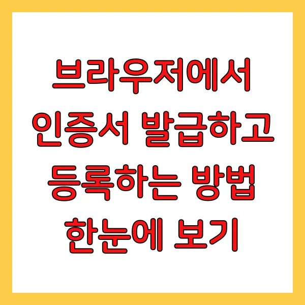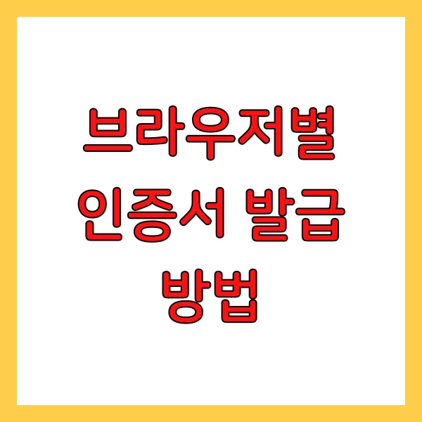 휴~! 드디어 인증서 발급의 핵심으로 들어왔네요! 앞서 인증서 발급 절차를 간략하게 살펴봤으니 이제 실전으로 넘어가 볼까요? 각 브라우저마다 인증서 발급 방법에 조금씩 차이가 있는데요, 걱정 마세요! 제가 친절하게 하나하나 짚어드리겠습니다. 마치 내비게이션처럼 따라오시기만 하면 됩니다! ^^