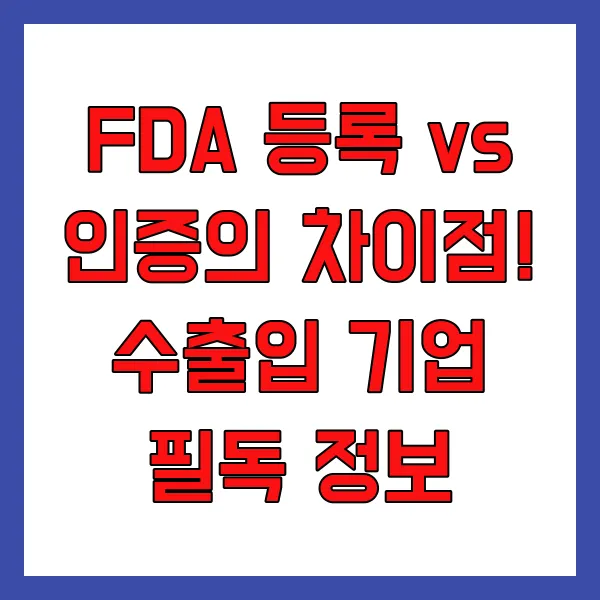 미국 시장 진출을 꿈꾸는 기업이라면 누구나 한 번쯤 마주치는 FDA . 그러나 FDA 등록과 FDA 인증 , 이 둘의 차이를 명확히 알고 계신가요? 많은 분들이 이 둘을 혼동하시는데, 사실 둘은 전혀 다른 개념 입니다. FDA 등록과 인증 은 제품의 종류, 그리고 기업의 역할에 따라 선택적으로 진행해야 하는 절차 입니다. 이 글에서는 FDA 등록과 인증의 차이점 을 확실하게 짚어드리고, 각 절차와 혜택, 비용까지 자세히 알려드리겠습니다. 수출입 기업 담당자라면 반드시 알아야 할 필수 정보 , 지금 바로 확인하세요!
