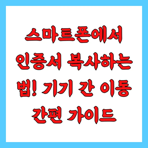 중요한 서류나 금융 거래를 위해 스마트폰에 저장된 인증서, 꼭 필요하죠? 그런데 핸드폰을 바꾸거나 다른 기기에 인증서가 필요할 때 어떻게 해야 할지 막막하신가요? 이럴 때 필요한 것이 바로 스마트폰 인증서 복사 입니다. 본 포스팅에서는 기기 간 이동 을 위한 인증서 복사 방법을 알기 쉽게 설명해 드리겠습니다. 복잡한 절차 없이 간편하게 따라 하실 수 있도록 스마트폰 인증서 종류 부터 복사 후 확인 및 주의사항 까지 단계별로 자세히 안내해 드릴 예정입니다. 인증서 복사, 생각보다 어렵지 않습니다! 지금 바로 시작해 볼까요?