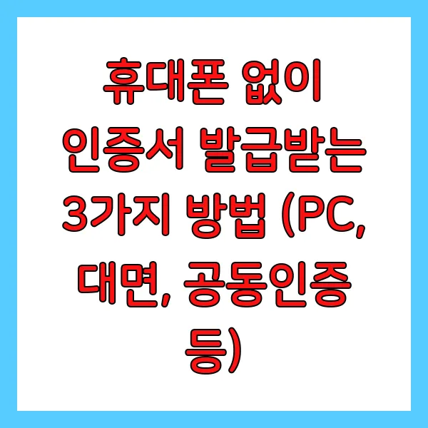 휴대폰이 없어도 인증서 발급, 가능할까요? 생각보다 많은 분들이 핸드폰 분실이나 고장 등의 이유로 휴대폰 없이 인증서를 발급받아야 하는 상황 에 놓이곤 합니다. 이런 곤란한 상황에 당황하지 않고 인증서를 발급받을 수 있는 다양한 방법 을 알려드리겠습니다.