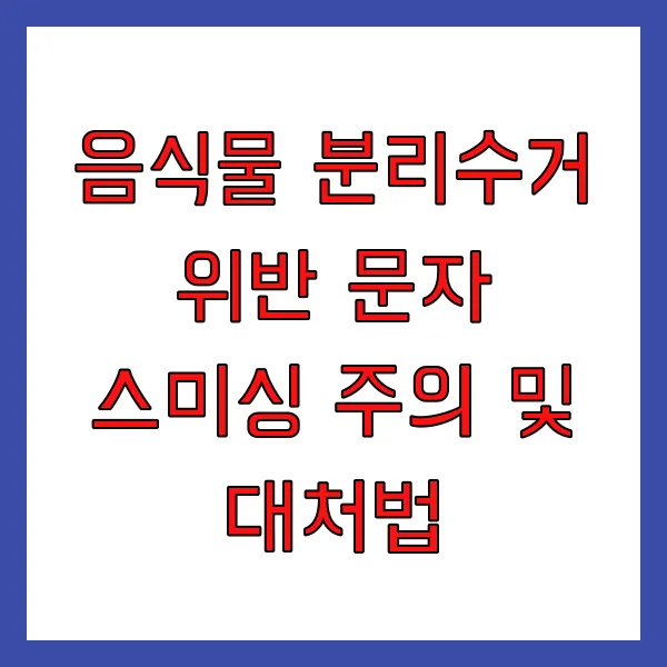 최근 음식물 쓰레기 분리수거 규정 위반을 사칭한 스미싱(Smishing) 문자가 급증 하며 시민들의 불안감을 악용 하는 사례가 늘고 있습니다. 이러한 신종 금융 사기 수법 은 교묘하게 공공기관을 사칭 하고 심리적 압박감을 조성하여 금전적 피해나 개인정보 탈취 를 목적으로 하므로, 그 특징을 명확히 인지하고 각별히 주의 해야 합니다!!
