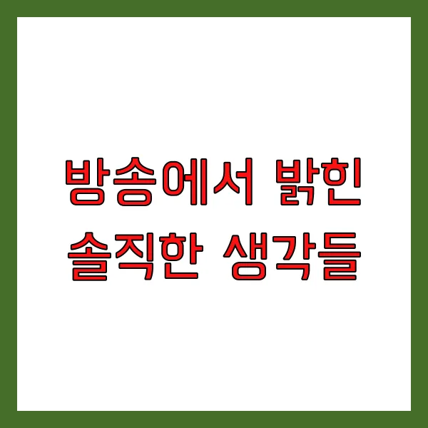 결론적으로, 방송에서 드러난 빠니보틀의 생각들은 그의 성공 신화 이면에 있는 고민과 철학 을 엿볼 수 있게 해주었습니다. 과거의 어려움을 딛고 자신만의 길을 개척해나가는 과정, 성공 앞에서도 흔들리지 않는 가치관, 그리고 세상을 향한 진솔한 시선 은 많은 이들에게 귀감이 되고 있습니다 . 그의 이야기는 단순히 한 명의 성공한 유튜버 스토리를 넘어, 불확실한 시대를 살아가는 우리 모두에게 생각할 거리 를 던져줍니다.