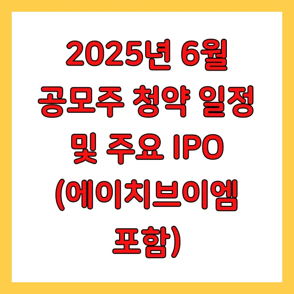 2025년 6월 , 투자자들의 시선을 사로잡을 공모주 시장 이 다시 한번 활기를 띨 전망 입니다. 새로운 투자 기회 를 모색하는 분들에게 이번 달은 중요한 분기점 이 될 수 있습니다. 본 글에서는 상세한 2025년 6월 공모주 청약 일정 과 더불어, 시장의 큰 기대를 받는 에이치브이엠(HVM)을 포함한 주요 IPO 기업 정보 를 심도 있게 분석 해 드립니다. 성공적인 투자를 위한 핵심 정보 를 확인하시기 바랍니다.
