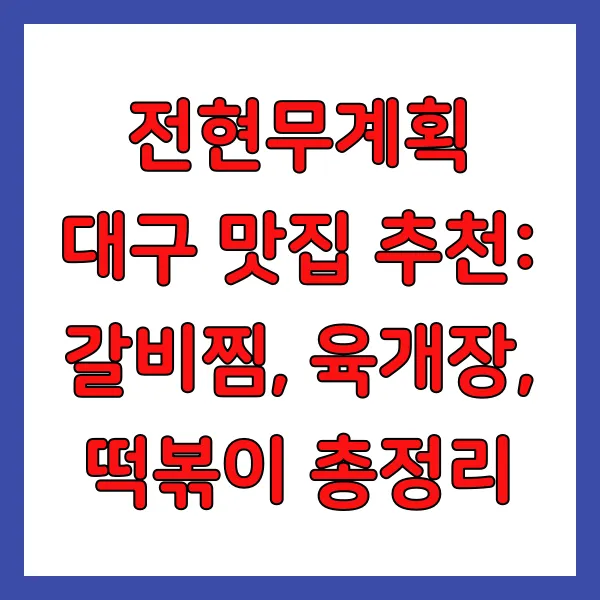 최근 미식가들 사이에서 대구의 음식 문화 가 큰 주목을 받고 있으며, 특히 ' 전현무계획 '을 통해 소개된 맛집들은 많은 이들의 방문 리스트 에 오르고 있습니다. 본 글에서는 전현무계획 대구 맛집 으로 화제가 된 곳 중에서도 핵심 메뉴인 갈비찜 , 전통의 맛을 간직한 육개장 , 그리고 추억을 소환하는 시장 떡볶이 맛집 들을 엄선하여 소개하고자 합니다. 과연 어떤 특별한 맛으로 대중의 입맛을 사로잡았는지, 그 비결 을 상세히 파헤쳐 보겠습니다. 여러분의 미식 경험을 한층 더 풍부하게 만들어 드릴 정보를 지금부터 제공해 드립니다.