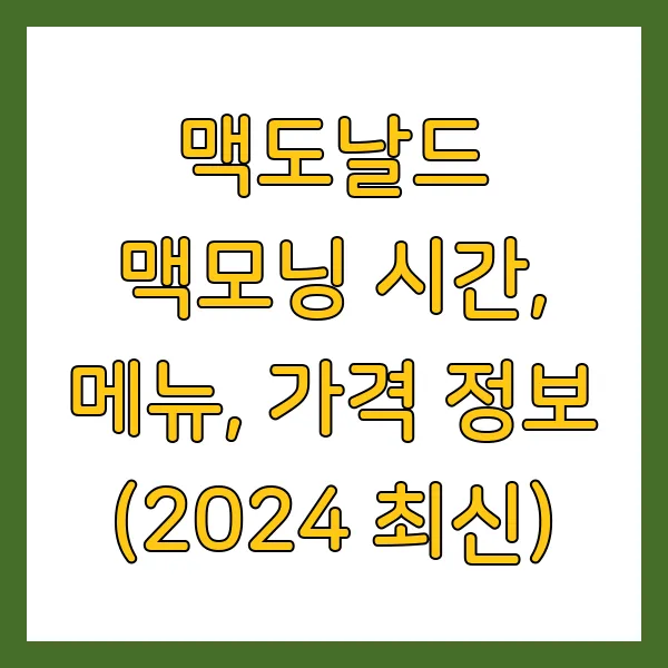 맥도날드 맥모닝 시간, 메뉴, 가격 정보 (2025 최신)