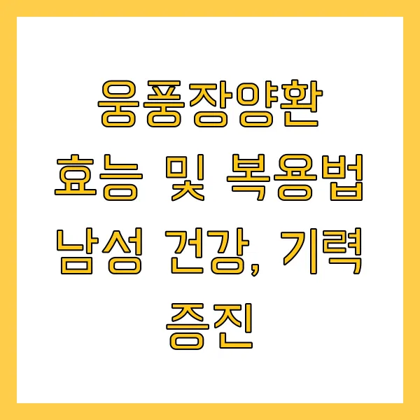 웅풍장양환 효능 및 복용법: 남성 건강과 기력 증진을 위한 궁극의 선택?!