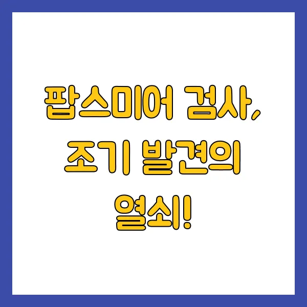 팝스미어 검사는 자궁경부암을 조기에 발견하기 위한 가장 기본적인 검사입니다. 팝스미어 검사를 통해 자궁경부 세포의 이상 유무를 확인하고, 암으로 발전할 가능성이 있는 병변을 조기에 발견할 수 있습니다.
