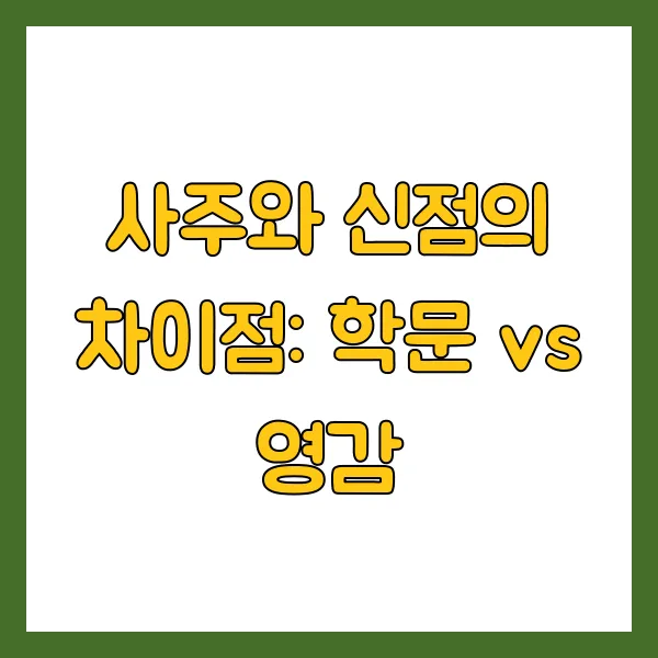 사주와 신점은 모두 미래를 예측하는 방법이지만, 그 기반과 접근 방식에서 근본적인 차이를 보입니다. 사주는 통계와 확률에 기반한 학문입니다. 반면, 신점은 신과의 교감을 통해 얻는 영감에 의존합니다.