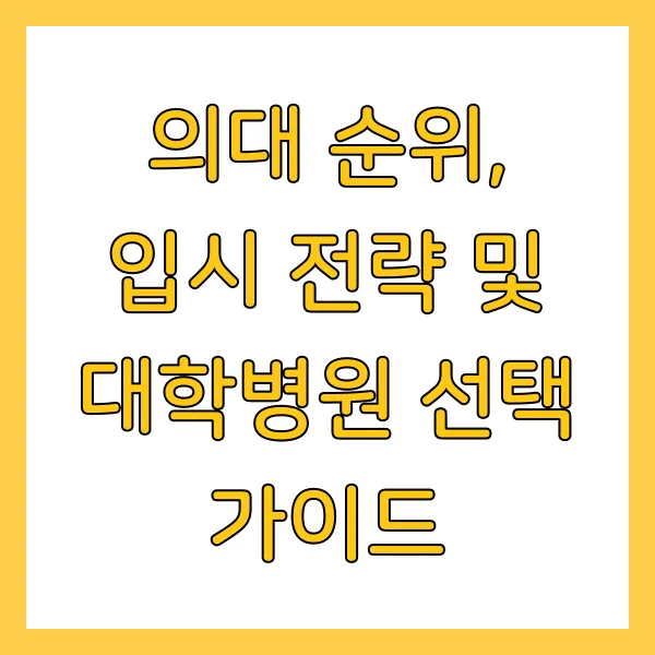 의대 순위, 입시 전략 및 대학병원 선택 가이드