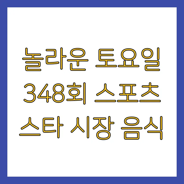 '놀라운 토요일' 348회는 스포츠 스타라는 신선한 게스트와 울산 수암상가시장의 맛있는 음식이 만나 최상의 시너지를 발휘한 특집이었습니다. 시청자들은 웃음과 감동, 그리고 미식의 즐거움을 동시에 만끽할 수 있었습니다.