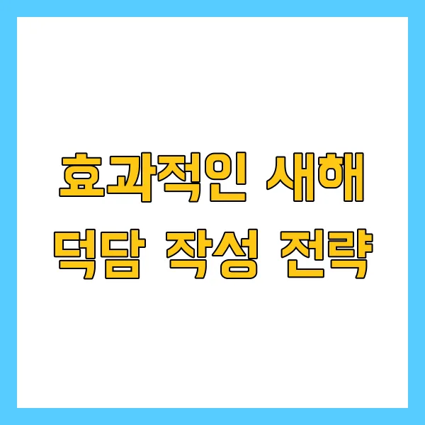 2025년 새해, 정성껏 준비한 덕담 한마디가 누군가에게는 큰 위로와 용기가 될 수 있으며, 잊지 못할 감동을 선사할 수도 있습니다. 본 포스팅에서 제시된 작성법과 유의사항들을 바탕으로, 진심을 담은 새해 덕담을 통해 더욱 풍요롭고 따뜻한 인간관계를 만들어가시기를 기원합니다. 행복 가득한 새해 맞이하시길 바랍니다!