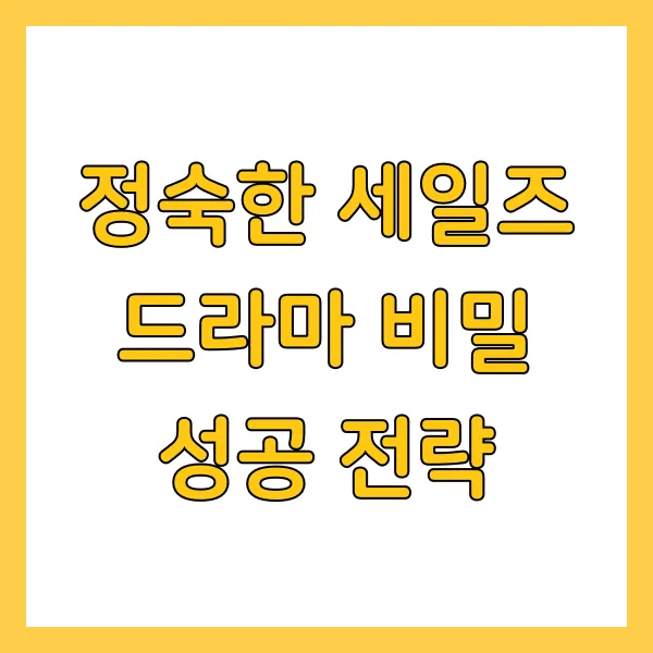Q5: '정숙한 세일즈'는 총 몇 부작으로 기획되었습니까? A5: 본 드라마는 총 12부작으로 제작되어, 밀도 있는 전개와 완성도 높은 결말로 시청자들에게 깊은 여운을 남겼습니다.